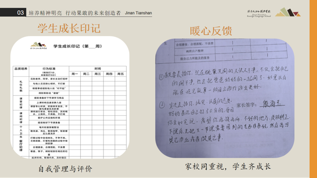 在天外,我们不仅重视知识的学习,更注重习惯培养。本学期更是提升了培养方案——为每个学生建立规则意识养成的计分表,周末由家长监督各项习惯的养成情况。礼仪、纪律和卫生习惯,明确的内容让家长对学生的培养与成长清晰可见。家校合力的成效显著,表格后家长发自肺腑的感言,记录着孩子成长的每一步,也让学校能及时了解家长需求,为孩子的教育方案提供实时调整。
