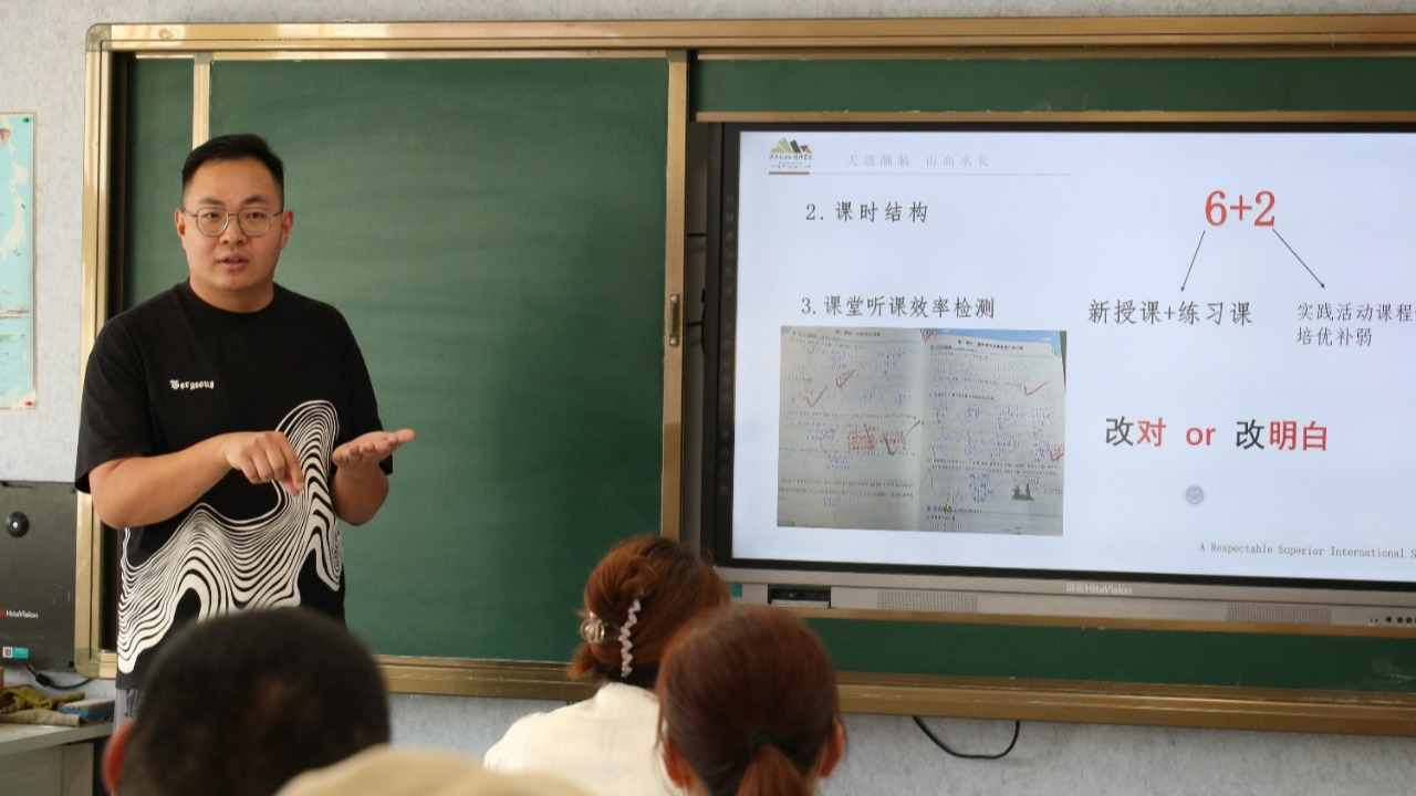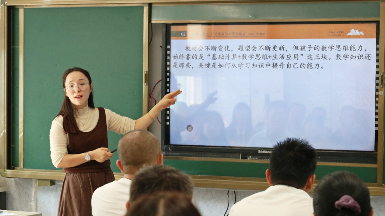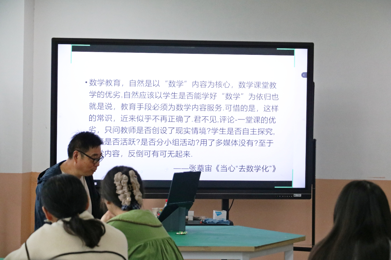 全景数学也是更注重学生学习体验的数学。作为全景数学创始人的张宏伟老师,在每月的数学教研中,不断优化现有数学课堂,他将生涩的知识点比喻为青蒿,而教师应该让学生带走青蒿素,真正能习得提纲挈领的核心要点。