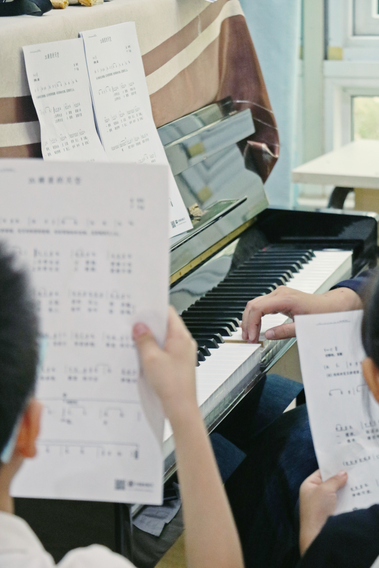 教室里,选修课上传来的钢琴声、教室里排练的歌声;